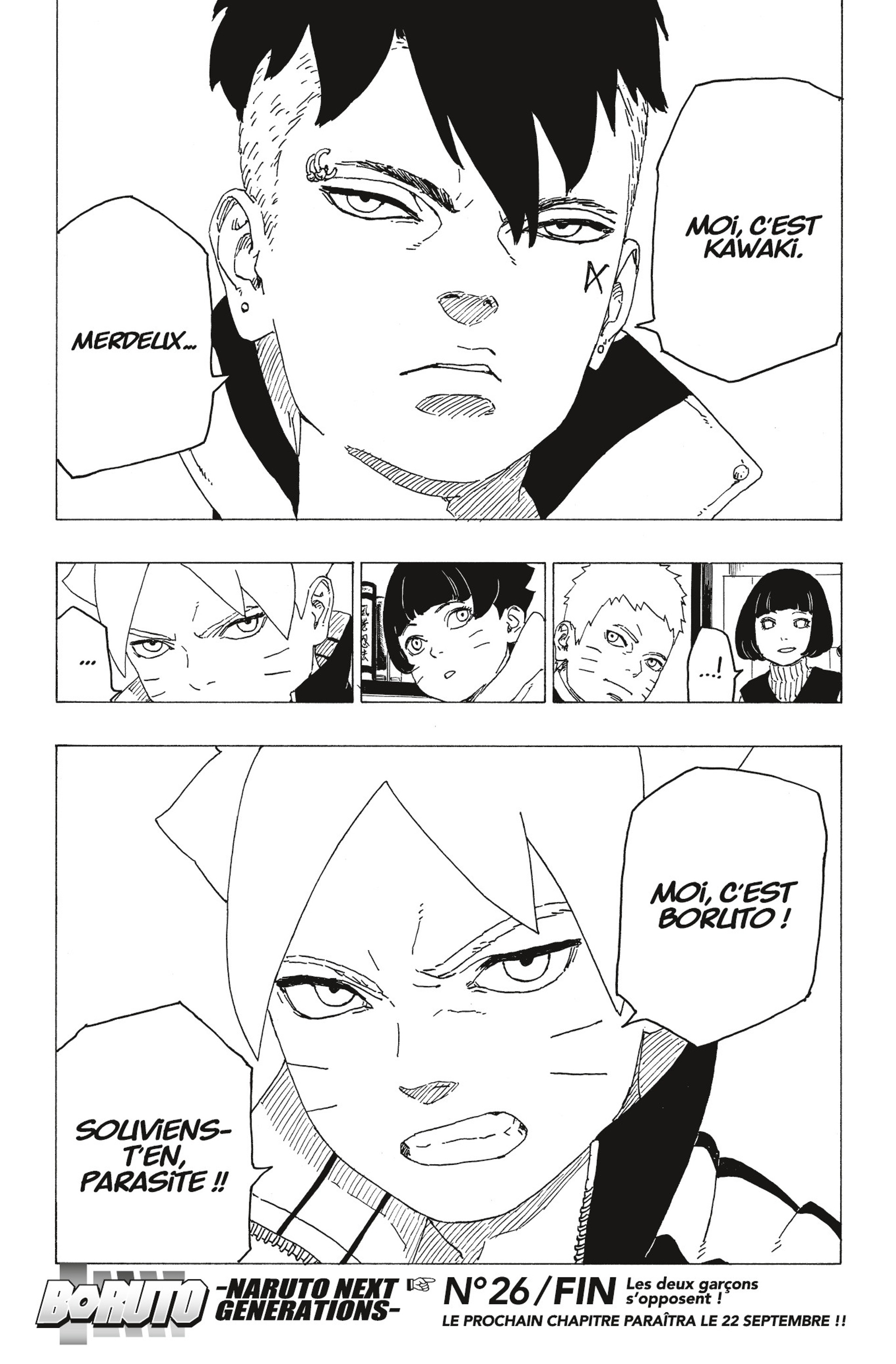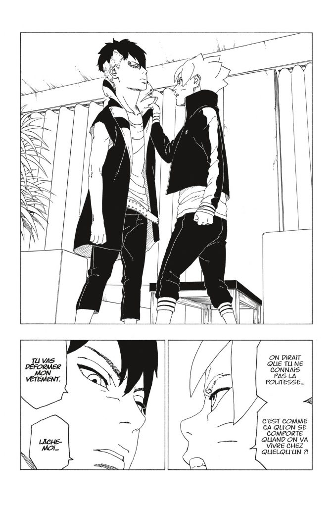 Franchement le chapitre mort de rire 😂😂🤣Genre « merdeux » et « parasite », Kawaki c’est sasuke x1000 mais en même temps quand on voit le chapitre 1 ça m’étonne pas